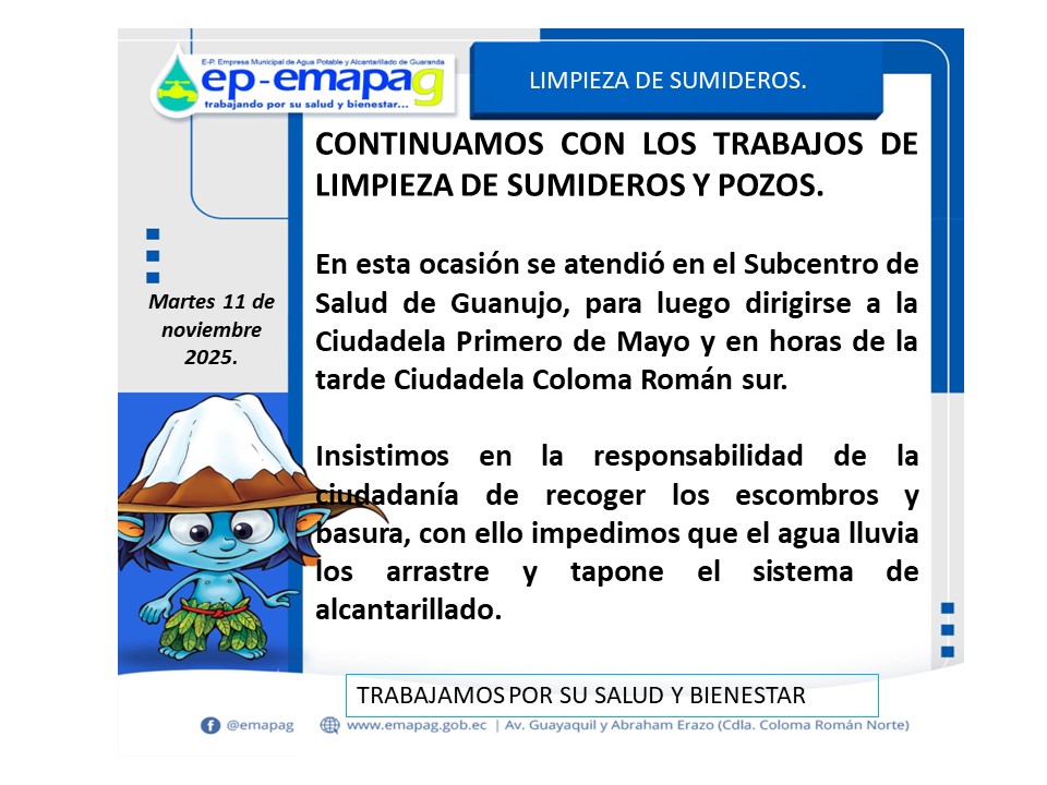 En esta ocasión las labores se centraron en una vivienda, donde se había taponado la tubería de la cocina y la casa estaba inundándose. La preocupación de sus moradores llegó hasta la EMAPA-G para que se dé atención a este inconveniente que llenó de intranquilidad, debido a la gran cantidad de agua que atravesó la